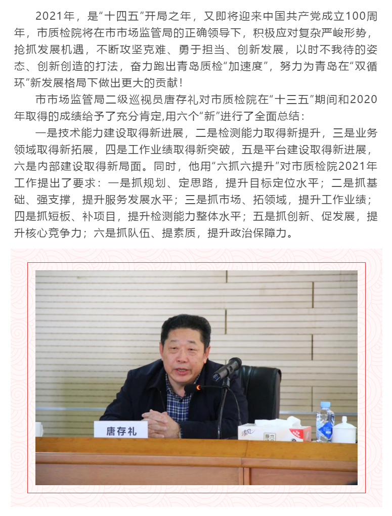 凝心聚力 克難奮進 ——青島質檢院召開2020年度總結表彰大會