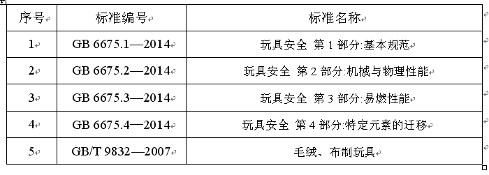 1.依據標準:目前毛絨玩具的國家標準為GB6675.1-2014《玩具安全第1部分:基本規范》、 GB6675.2-2014《玩具安全 第2部分:機械與物理性能》、 GB6675.3-2014《玩具安全 第3部分:易燃性能》、GB6675.4-2014《玩具安全 第4部分:特定元素的遷移》、GB/T 9832-2007《毛絨、布制玩具安全與質量》;