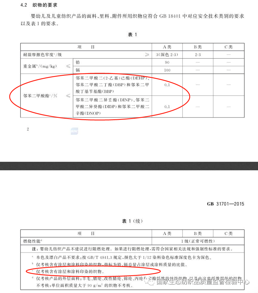 GB 31701-2015《嬰幼兒及兒童紡織產品安全技術規范》,2015年6月1日起,是我國首部專門針對嬰幼兒及兒童紡織產品的強制性國家標準;GB/T 20388 紡織品 鄰苯二甲酸酯的測定;