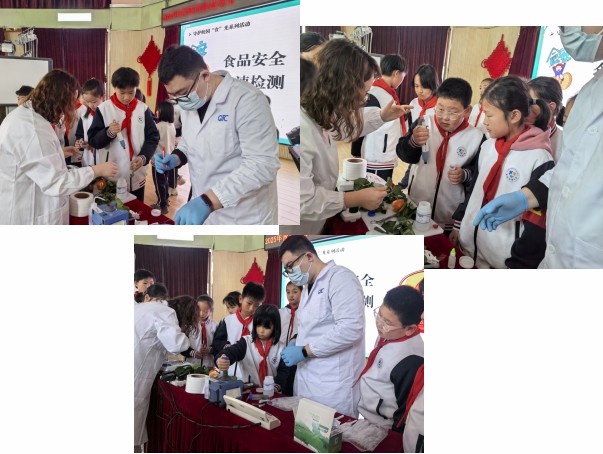 在完成現場快速檢測后,技術人員向同學們進行了食品安全知識的科普。從食品安全的概念入手,讓他們從小種下食品安全的種子,鼓勵大家養成健康飲食的良好習慣。最后帶領大家一起學習了選購食品時如何讀懂食品標簽,引導同學們選購安全健康的食品,樹牢食品安全意識。
