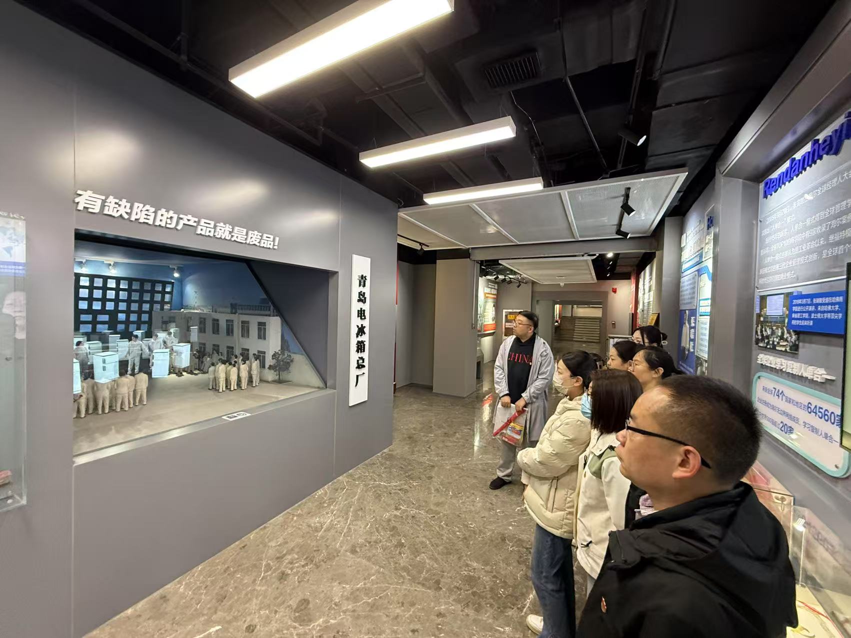 在講解員的帶領(lǐng)下,黨員們依次參觀了“工業(yè)之基”“品牌之都”“匠心之城”三大主題展廳及勞動(dòng)體驗(yàn)區(qū)。通過(guò)全息投影、沉浸式數(shù)字沙盤、幻影成像等創(chuàng)新技術(shù),黨員們仿佛置身于歷史現(xiàn)場(chǎng),親眼目睹郝建秀創(chuàng)新工作法的傳奇誕生,感受張瑞敏揮錘砸冰箱的震撼瞬間,領(lǐng)略許振超團(tuán)隊(duì)九破世界紀(jì)錄的輝煌成就。每一個(gè)細(xì)節(jié)都生動(dòng)展現(xiàn)了勞模精神、勞動(dòng)精神、工匠精神的深刻內(nèi)涵,讓黨員們深受觸動(dòng)。